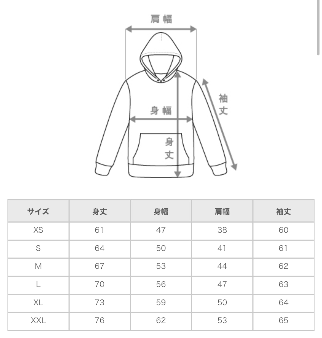 ・サイズ:XS〜2XL